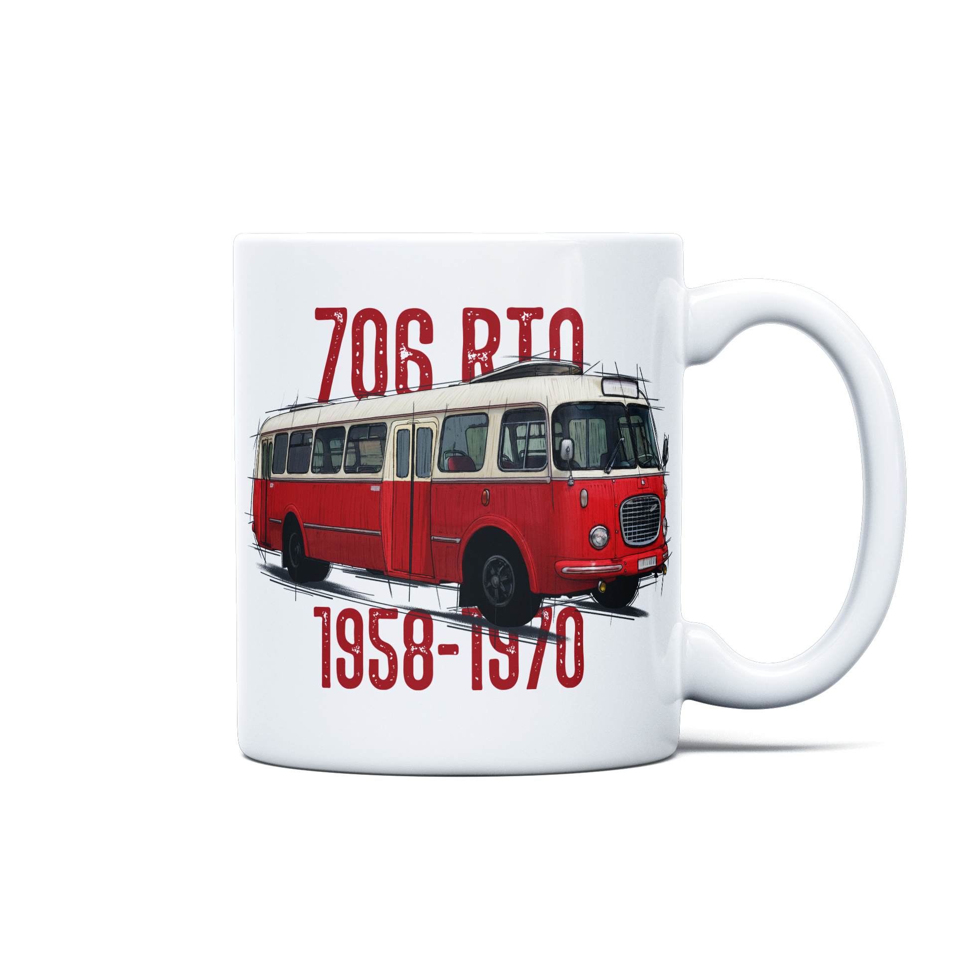 Bring a touch of vintage charm to your coffee breaks with our Škoda 706 RTO Mug, featuring the legendary bus that became a symbol of Czechoslovak public transport! Built between 1958 and 1972, the Škoda 706 RTO is famed for its rounded, elegant design and signature front grille that turned heads on every route. Known lovingly as "the egg" or "the cucumber," this bus carried generations of travelers and now lives on as a beloved icon for enthusiasts of classic vehicles.