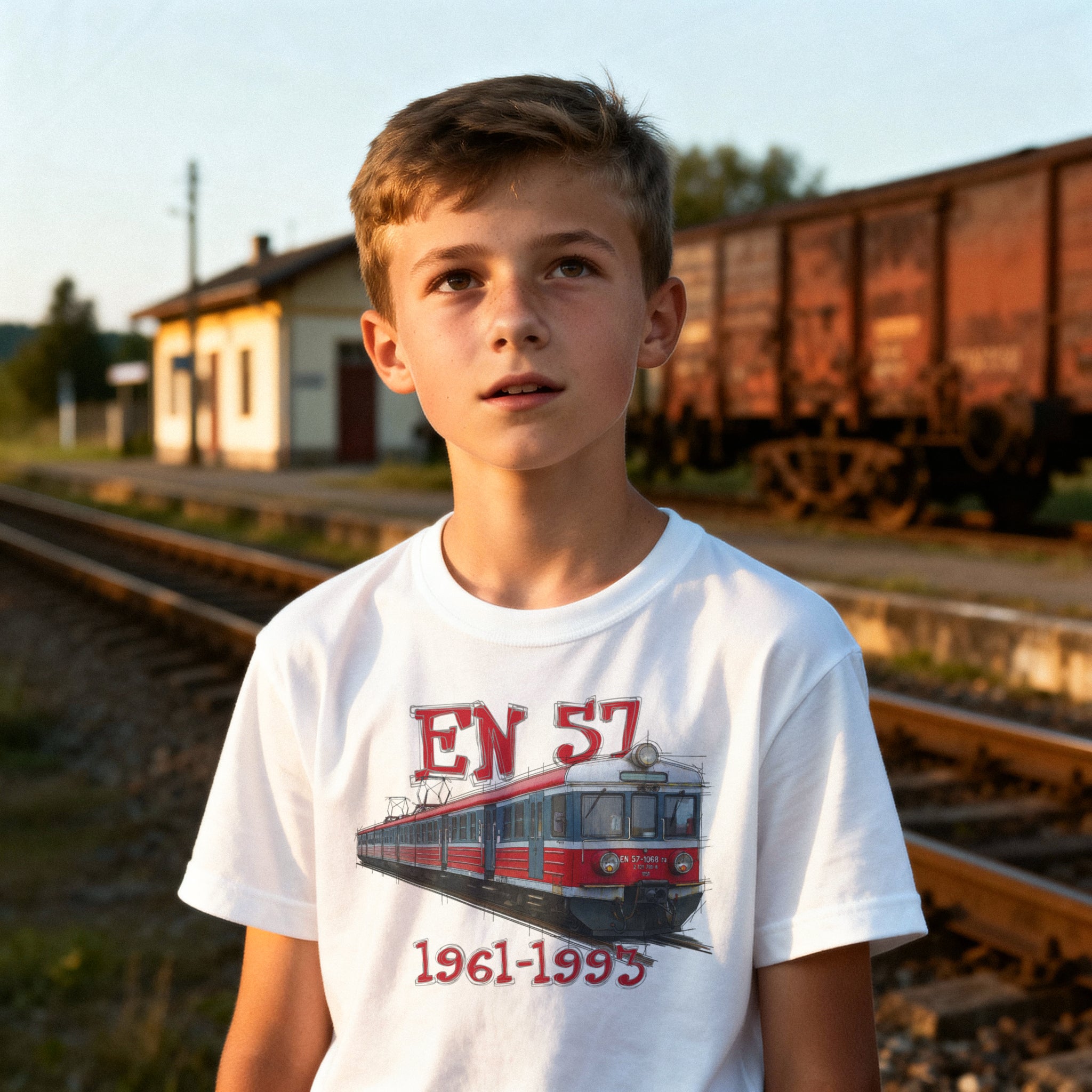 Koszulka EN57 to Twój bilet do nostalgii, oddający ducha tysięcy podróży po Polsce. Od porannych dojazdów do pracy po weekendowe wypady na wieś, ten pociąg był cichym świadkiem milionów historii. Miłośnicy kolei podziwiają go, pasażerowie na nim polegają, a każdy pamięta swoją pierwszą podróż – wraz ze skrzypiącymi drzwiami i delikatnym kołysaniem, które oznaczało, że jesteś w drodze.